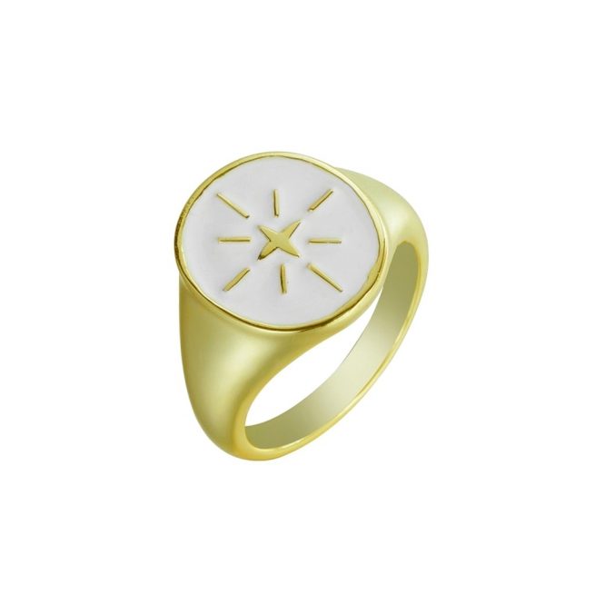 Anillo estilo sello con «Rosa de los vientos» esmaltado en blanco.